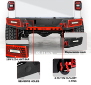 - Enhanced Off-Road Capability:Two high-strength D-ring mounts (capacity: 9500 lbs) for recovery situations.Integrated RGBW LED fog lights for improved visibility on off-road trails.