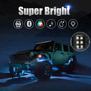 Sunpie 8PCS RGBW Rectangle LED Rock Lights Bluetooth & Remote Controller