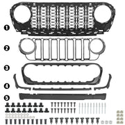 ABS Black & Silver Splicing Front Grille for 2018+ Jeep Wrangler JL JLU 4xe & Jeep Gladiator