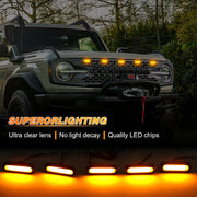 5PCS LED Grille Lights Amber & Smoked with Wiring Harness for 2021-2025 Ford Bronco 2/4 Doors Badlands/ Wildtrak/ Everglades