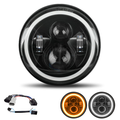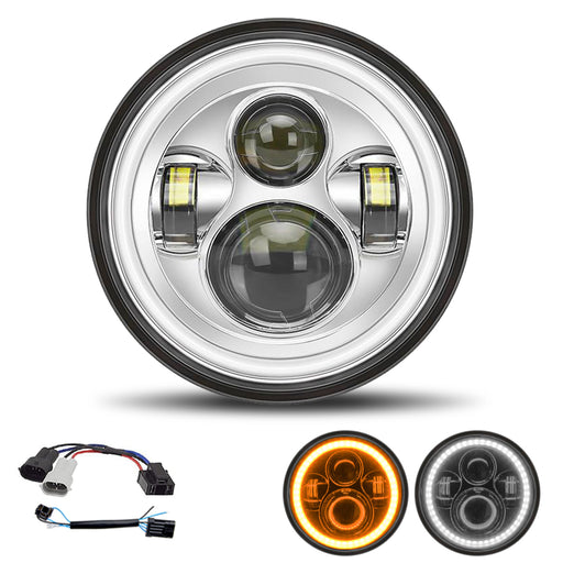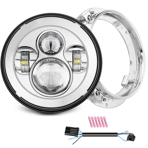 View full details7-inch Halo Chrome/Black LED Headlight with Integrated DRL & Turn Signal for Harley (2 adapter wires)