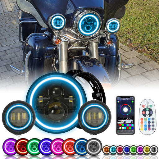 View full details7" LED Halo Headlight with 4.5" LED Passing Lights and 7" Bracket Mounting Ring Kits for Harley Indian Yamaha Motorcycles