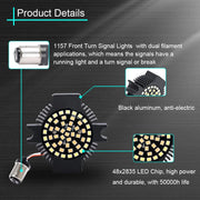 - Bright than OEM Stock: The motorcycle lights is super bright, 1157 turn signal light flat style available in white and amber, meanwhile the 1156 tail light flat style available in red. We provide additional white light to the front. When you turn the signals on they turn to amber, and the out-ring 21smd illuminate white, supplements to your headlights.