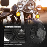 - inted caps add new features to the motorcycle in appearance and maintain clear visibility without weakening the halogen or LED light. The smoked lens made of hard PC material, do not worry about the rock on the road.