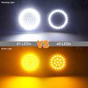 - Light Performance:【Switchback Design Lighting , 81 LEDS, Extremely Bright】200% brighter than halogen bulbs.Front 1157 blinker available in two color, white for running light, amber for turn signals.Rear signal lights available in red, out ring for running light,all for brake light.This LED turn signals allows you to be more noticeable.it have a long life and fit the motorcycle system perfectly.