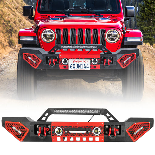 Jeep Wrangler Front Bumper with Winch Plate 5 LED Lights for JK JKU 4xe JL JLU Jeep Gladiator JT