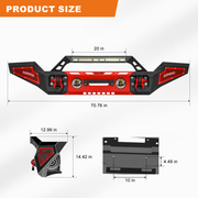 • Package Dimensions and Weight:Front bumper: 72.8 x 13.4 x 13.4 inches (185 x 34 x 34 cm).Weight: 99 lbs (45 kg), Two sets of wiring harnesses for work lights.