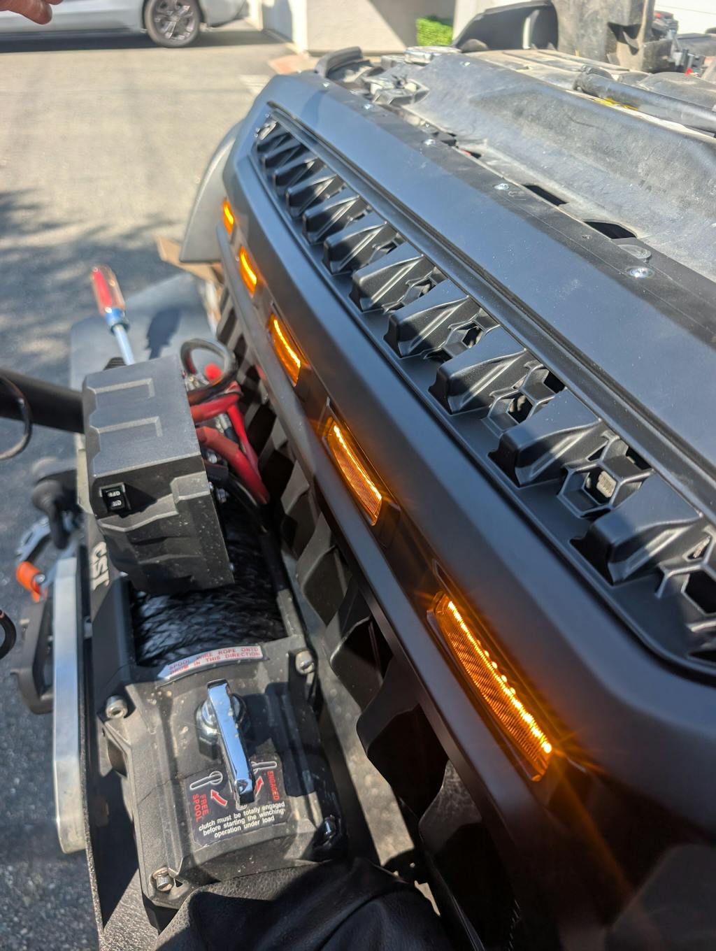 - This Jeep Grille equipped with an LED Amber Running light,which can effectively broaden your driving view at night or in bad weather.It can also improve the appearance of your car, make your car look more cool, and stand out from the car group.