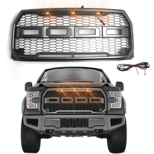 View full detailsRaptor Style Grill for Ford F150 2015 2016 2017 Including XL, XLT, LARIAT, Raptor, King Ranch, Platinum and Limited, Front Grill for F150 with Amber Lights & Letters