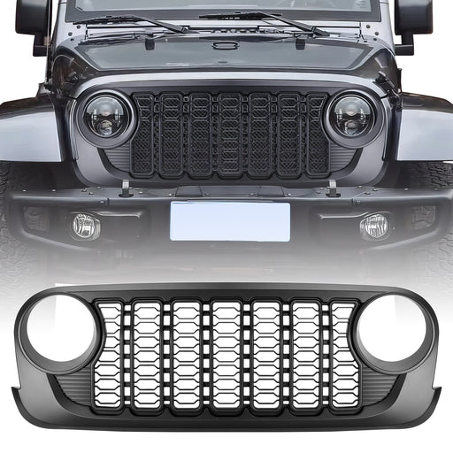 Jeep Grille (Transformers) with Mesh Matte Black Grid for 2018-2025 Jeep Wrangler JL JLU 4XE & Jeep Gladiator JT
