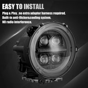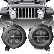 9" 3D Four Lens-Type Jeep Wrangler JL 4xe Gladiator LED Headlights Featuring a Dynamic Welcome Sequence, Integrated DRL, and Turn Signals