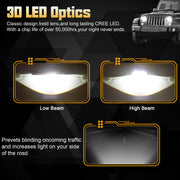 - Durable Construction and Long Lifespan: Built to withstand the rigors of off-roading and daily driving, these LED headlights feature a robust construction for lasting durability. The energy-efficient LED technology also ensures a significantly longer lifespan compared to traditional halogen bulbs, saving you time and money on replacements. Â