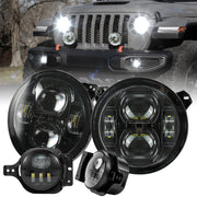 9"Black High/Low Beam LED Leadlights and 4"5D LED Fog Lights for 2018-2025 Jeep Wrangler JL & Jeep Gladiator
