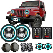 Jeep Wrangler JK/JKU LED Lights Combo Kits, 7" RGBW Headlights, 4"RGBW Fog Lights, Front Turn Signals, Fender Turn Signals, Tail Lights