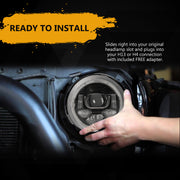 - [Best Upgrade 9-inch LED Headlights]--These 9-inch halo LED Headlights are made of Durable&Tough PC Material, built-in a high-strength aluminum alloy radiator, high power fan forms internal air circulation and improves heat dissipation efficiency, protect LED from overheating damage, ensure the brightness will not attenuate after years. Waterproof IP67, shockproof and dustproof, Could withstand any harsh condition!