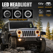 7-Inch 3D Lens LED Headlights with DRL & Turn Signal for 1976-2018 Jeep Wrangler CJ TJ LJ JK JKU (Pair)