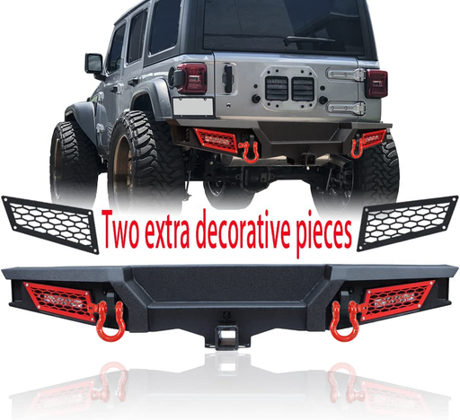View full detailsJeep Rear Bumper Textured Black w/2x 18W LED Lights & Hook Receivers and 2X 4.75T D-Rings Compatible With 2018-2026 Wrangler JL & JLU 4xe