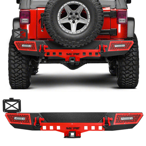 View full detailsJeep Wrangler Rear Bumper Black w/2x 18W LED Lights & Hook Receivers and 2X 4.75T D-Rings fit 2007-2018 Wrangler JK & JKU