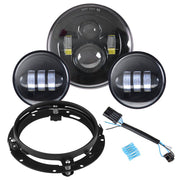 - Package included: 1pc 7 inch LED headlamp + 2pcs 4.5" passing lamp + 1pc mount ring adaptor + 2pc harness adaptor