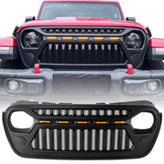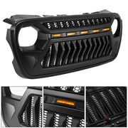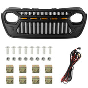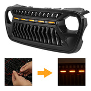 Jeep Grille (Angry Birds) with White/Amber LED Lights ABS Matte Black for 2018-2025 Jeep Wrangler JL JLU 4XE & Jeep Gladiator JT