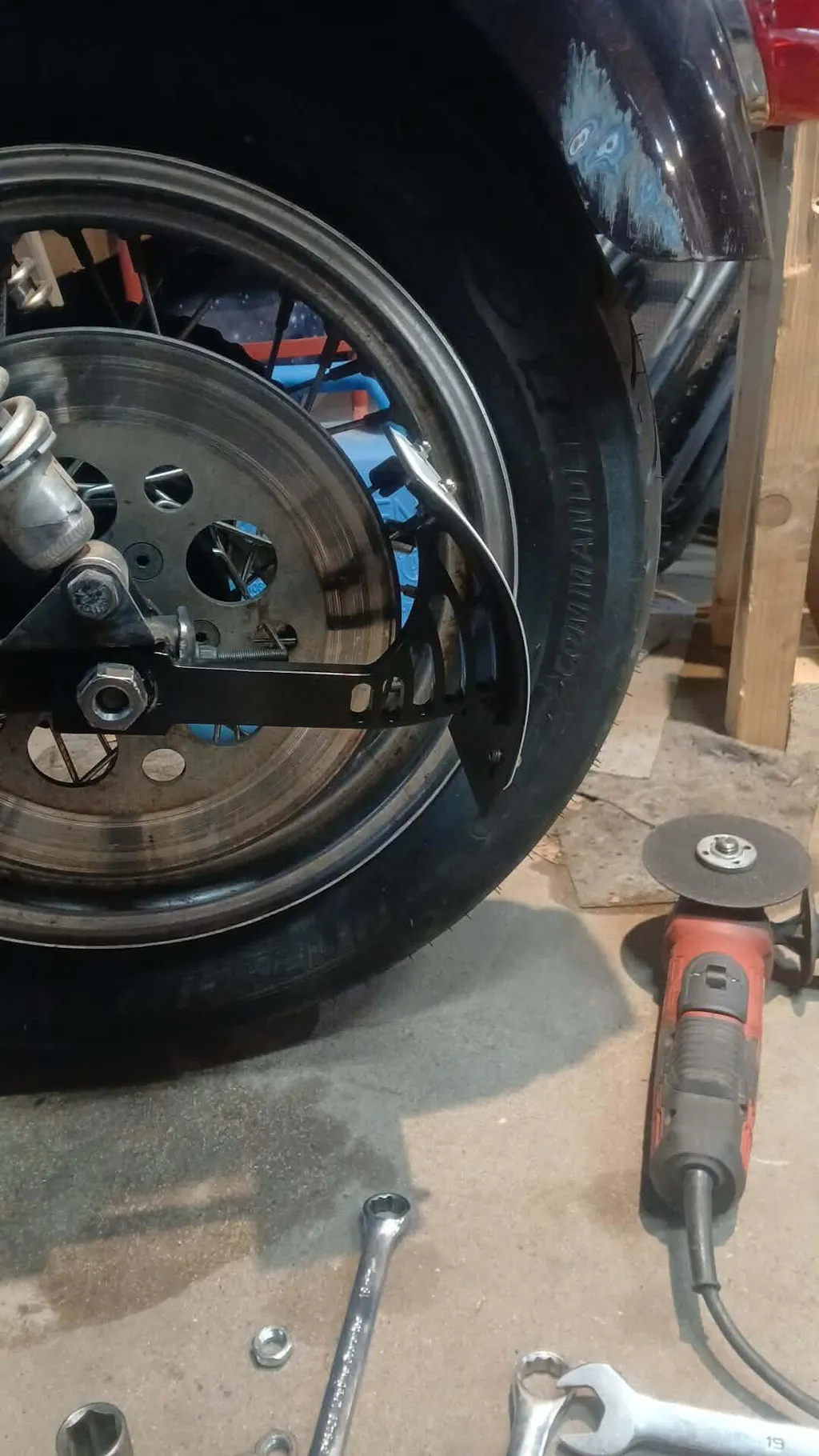 - Mounts behind your axle nut, or lower shock bolt, the arm is a little thick, make sure there's still enough width to catch any thread on the axle nut
